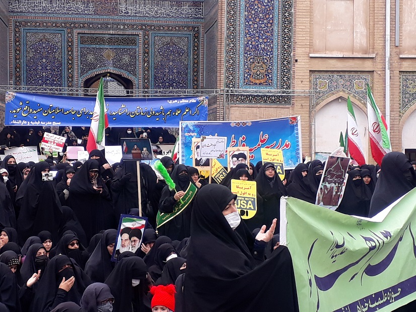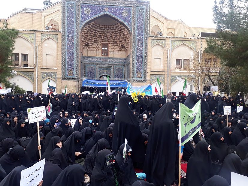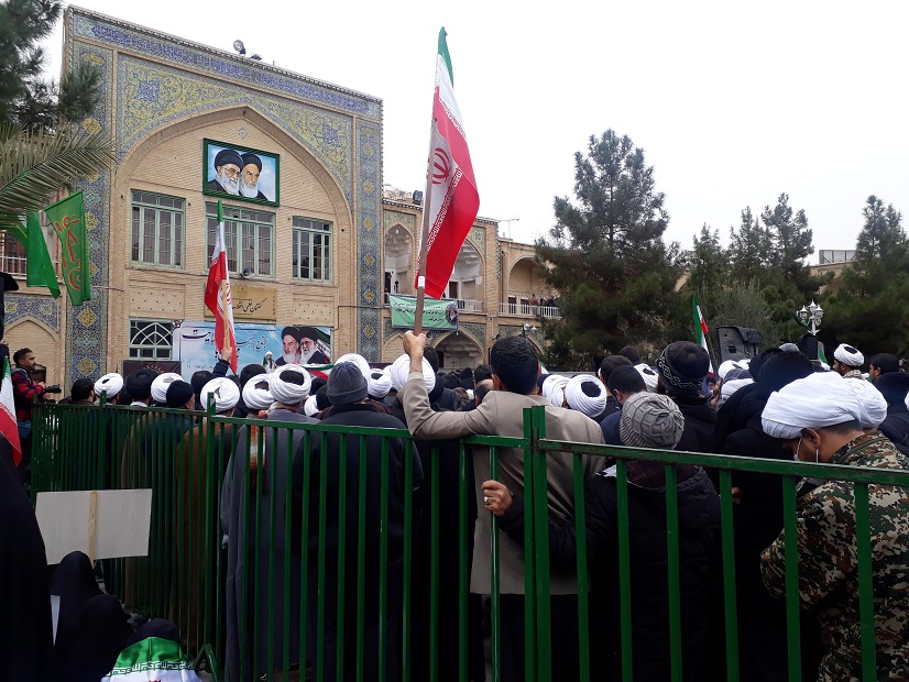 برپایی اجتماع بزرگ حوزویان و مردم قم در مدرسه فیضیه/ولایت فقیه بند تسبیح انقلاب است