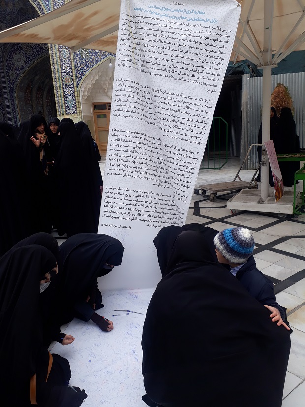 این تجمع از ساعت ۱۰ تا ۱۲ ظهر به طول انجامید و پس از آن دو طومار تحت عنوان «مطالبه گری از مجلس شورای اسلامی برای حل معضل بی حجابی و بی عفتی موجود در جامعه» به امضای شرکت کنندگان رسید.