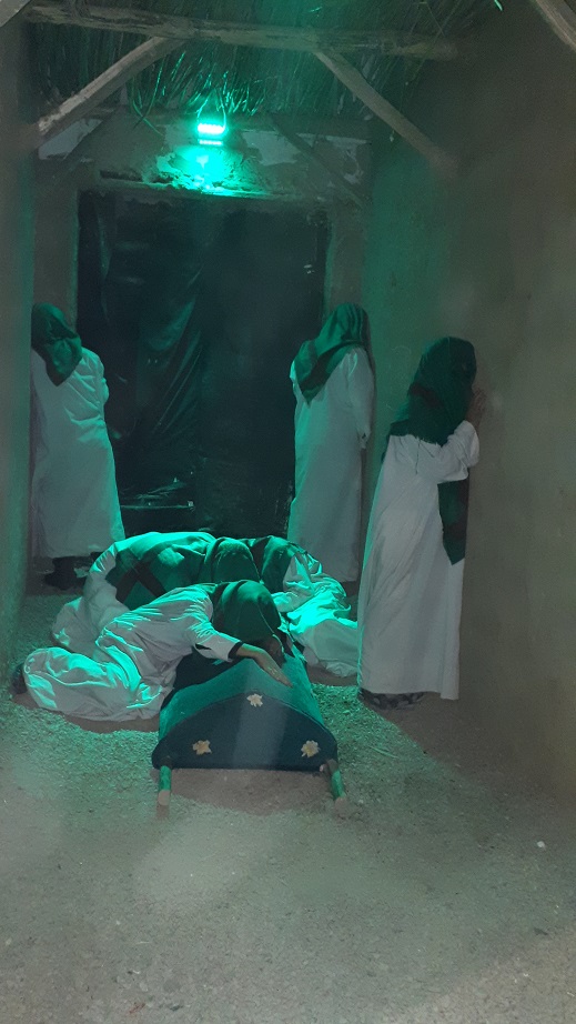 به یاد امام زمان عجل الله تعالی فرجه به صحنه مهدویت رفتیم و پس از دعا برای فرج امام عصر(عج)، خیمه سبز امام زمان(عج) را دیدیم و روایتی از قول معصوم شنیدیم که هر کس امام زمان خود را نشناسد و از دنیا برود به مرگ جاهلیت مرده است.