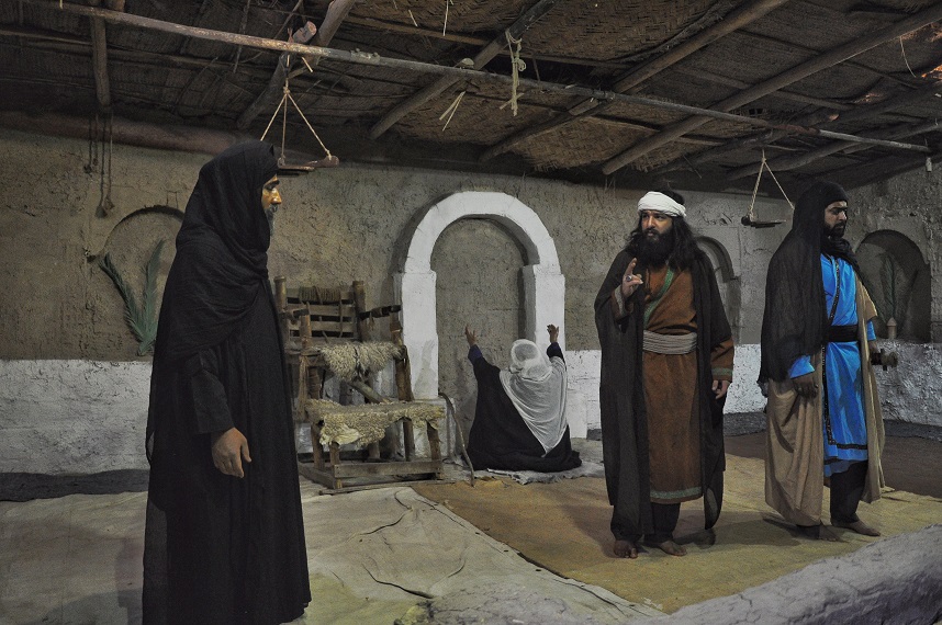 این نمایشگاه در شش بخش به زندگی حضرت زهرا سلام الله علیها و جریان سقیفه و به آتش کشیدن درب خانه امیرالمومنین برای گرفتن بیعت اجباری پرداخته است.