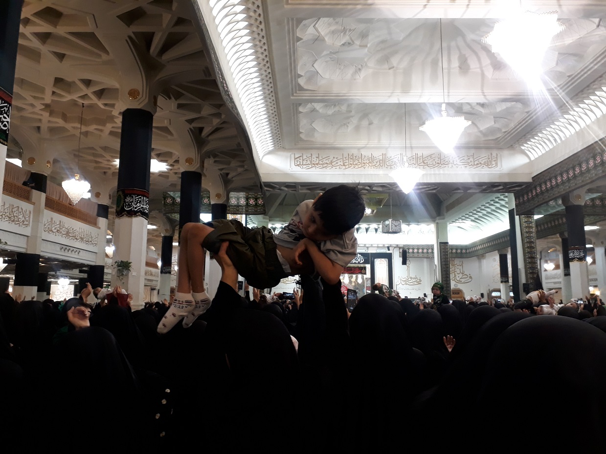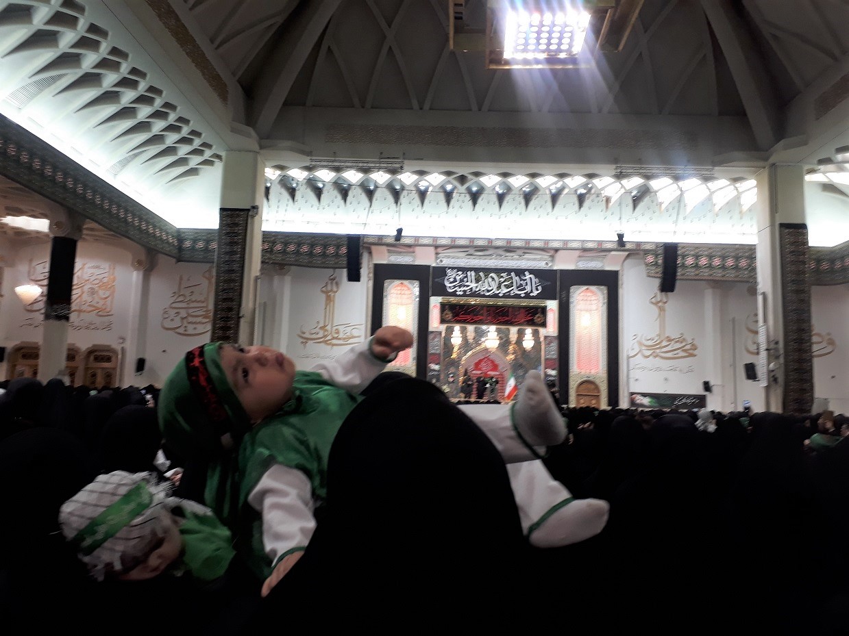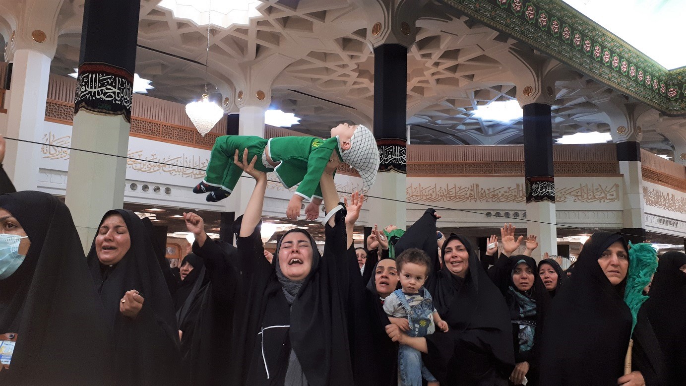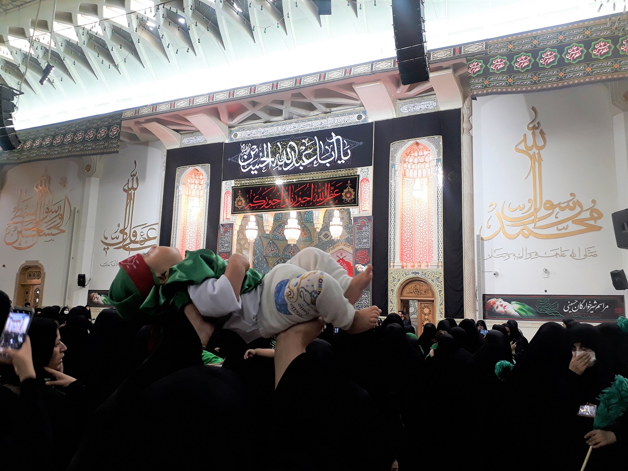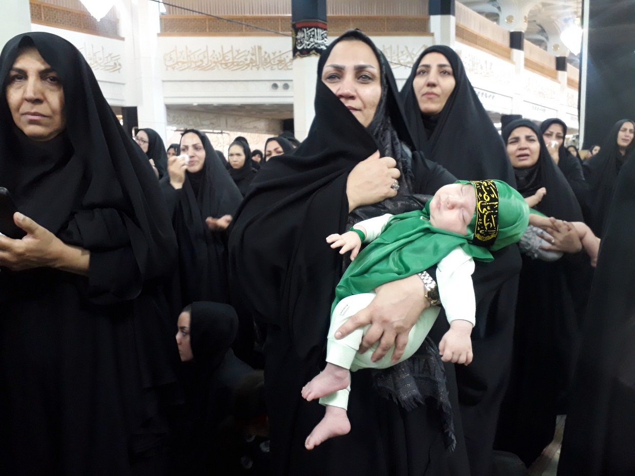 مادران با چهرههای غمگین و چشمان اشک آلود فرزندان شیرخوار خود را بالای سرگرفته و عهد بستند که فرزندشان را در مکتب سرخ امام حسین علیه السلام برای سربازی حضرت مهدی(عج) پرورش دهند.