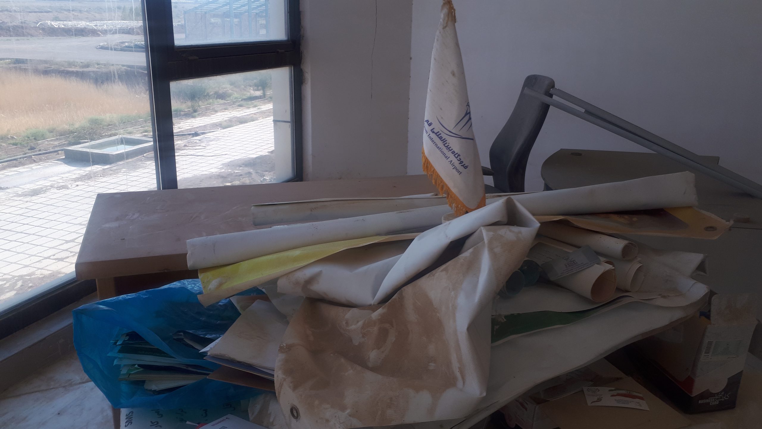 ۱۲ دقیقه زمان برد تا به فرودگاه رسیدیم؛ ساختمانهای نیمه کاره شامل برج مراقبت، ساختمان مدیریت، اسکله باندهای پرواز، سونا وجکوزی و بازارچه پروتئین، رستوران چوبی با ۴۰۰ سکوی نشستن در دو طبقه، همه در حال مستهلک شدن است.