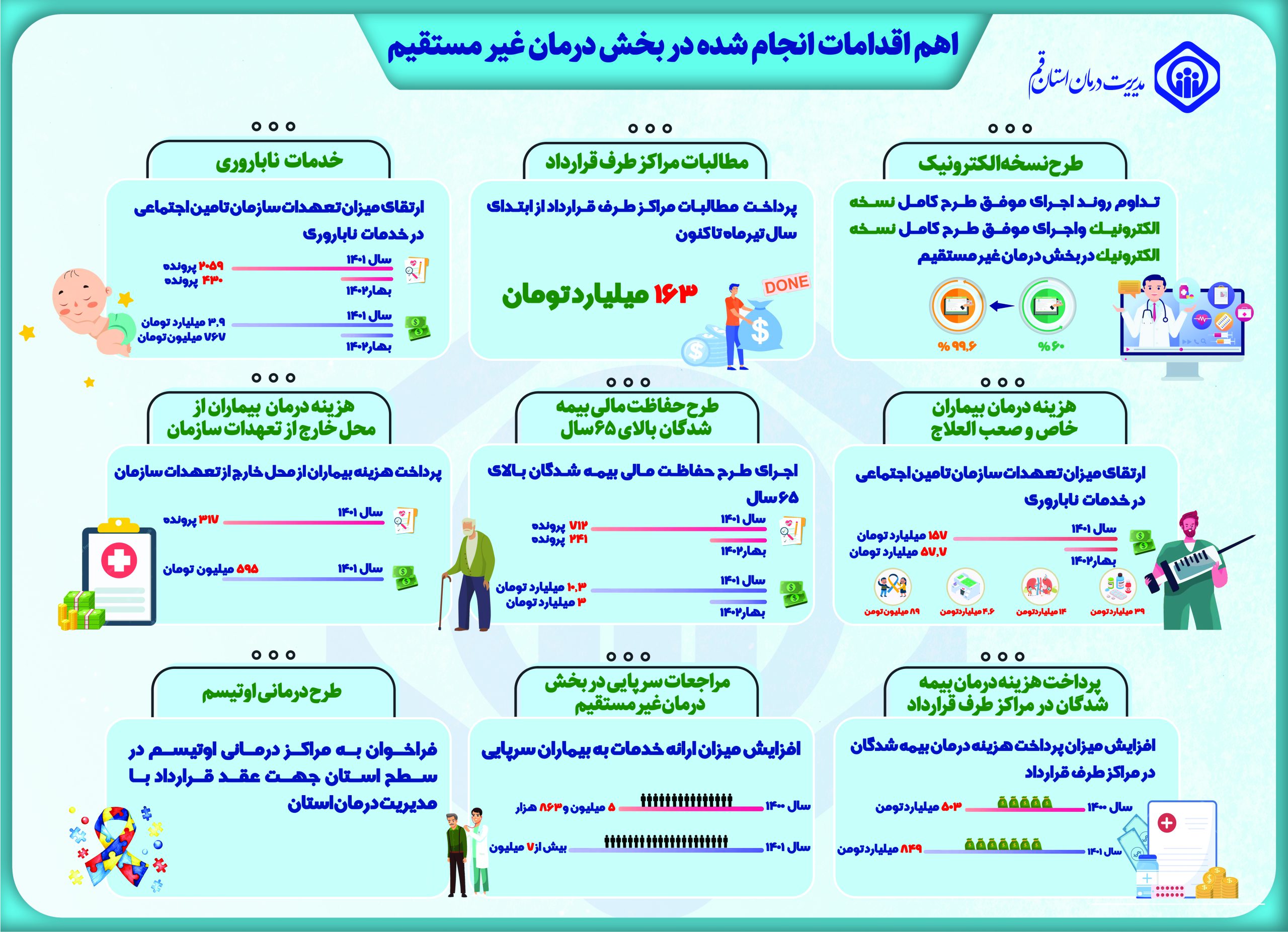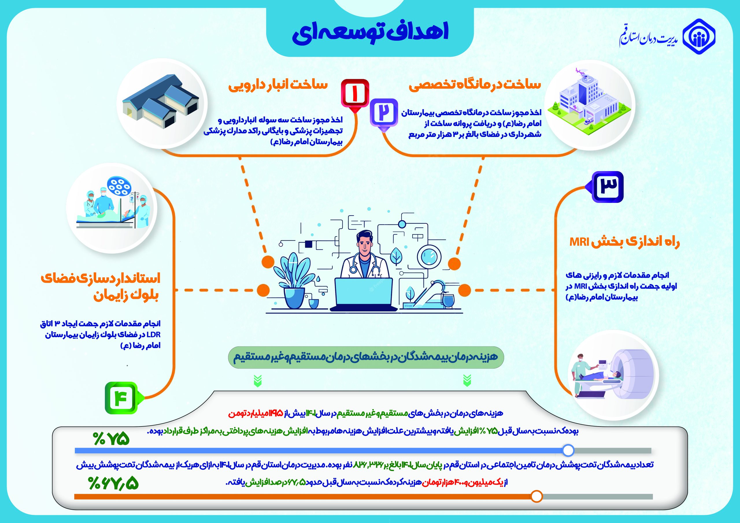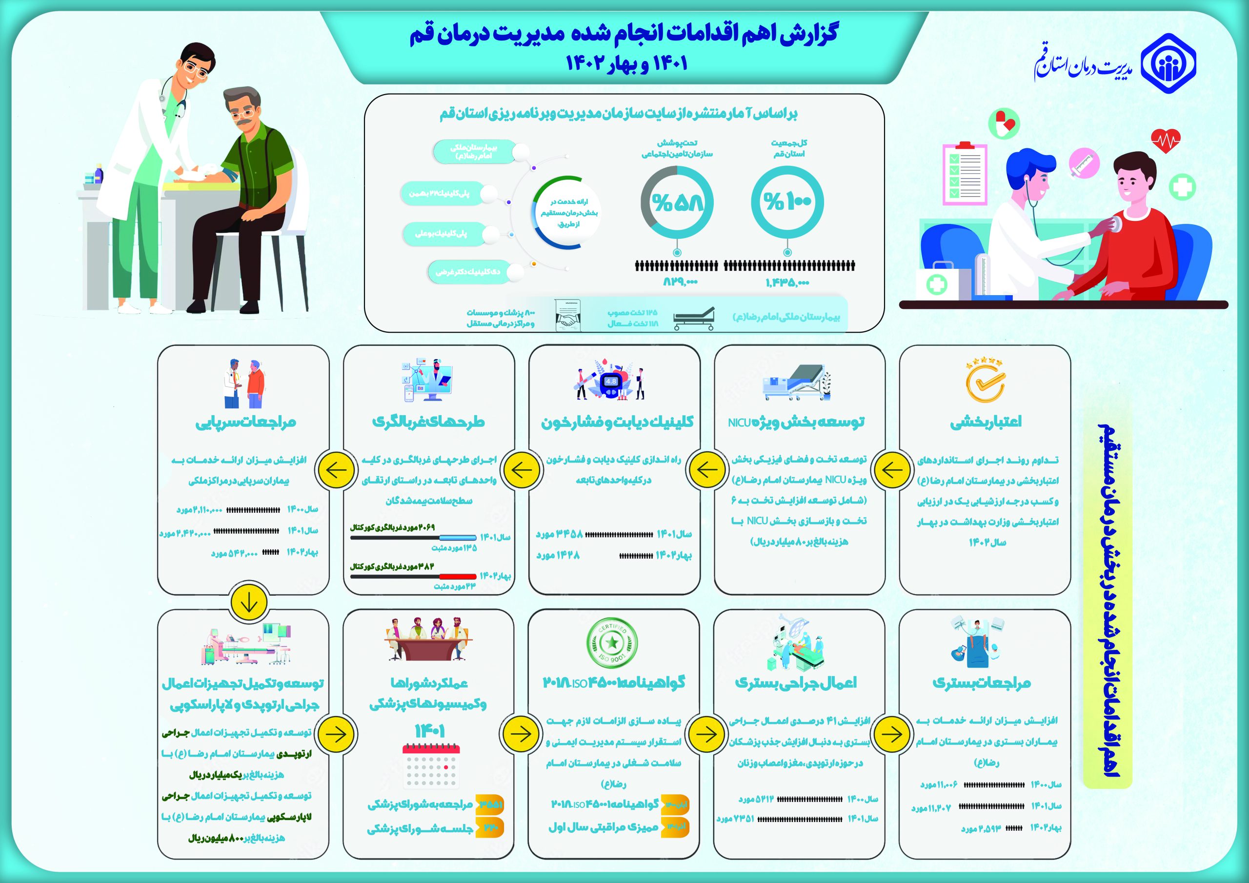 گزارش اینفوگرافی از عملکرد و برنامه های مدیریت درمان قم