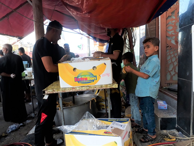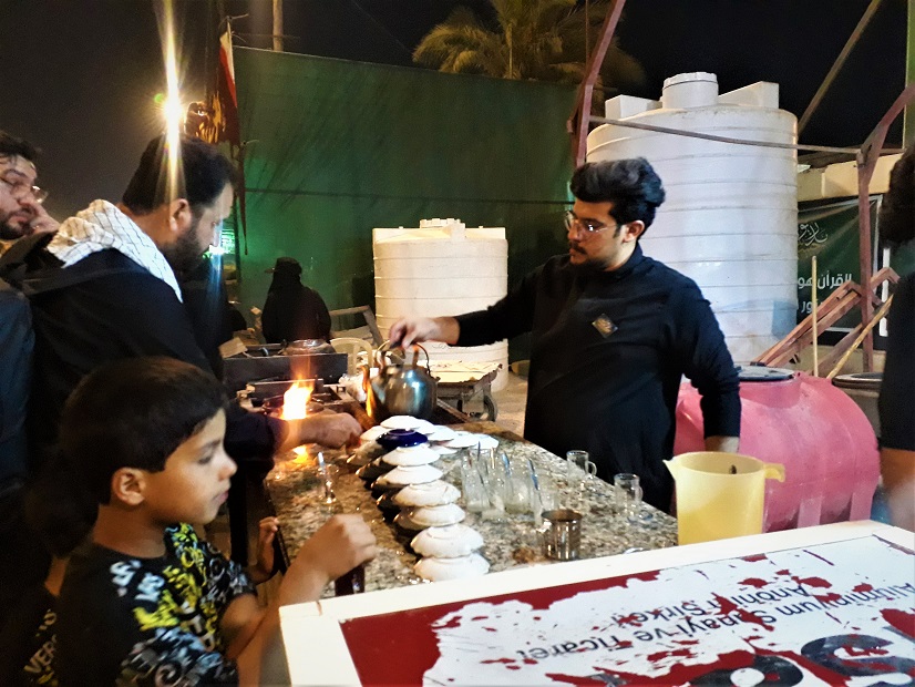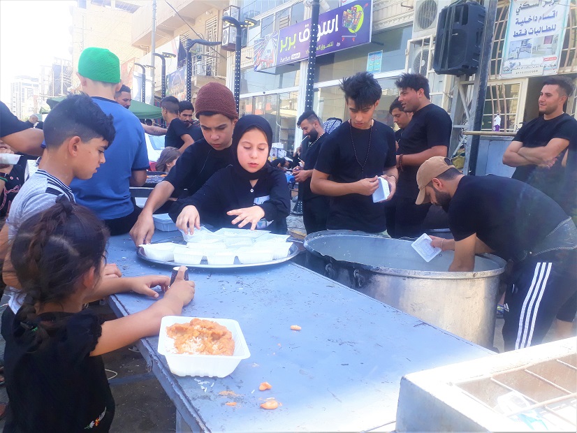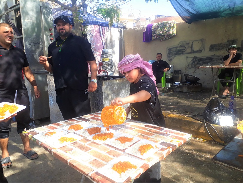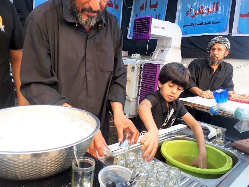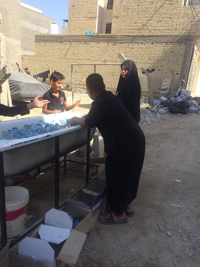 در این میان پذیرایی کودکان حال و هوای خود را دارد؛ آنان در گرمای عراق که گاهی بیش از ۵۰ درجه است با شور و ذوق کودکانه مشغول پذیرایی هستند.