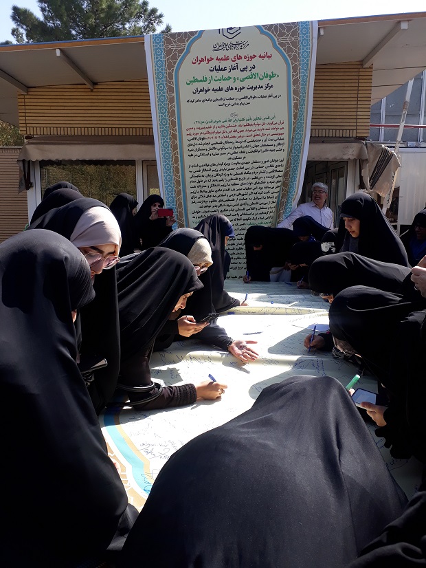 در حاشیه این مراسم طلاب با قرائت بیانیه به سه زبان فارسی، عربی و انگلیسی و امضای طومار خواستار احقاق حقوق مردم مظلوم فلسطین از مجامع بین المللی شدند.