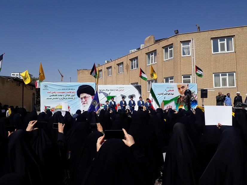 طلاب در این اجتماع با شعارهایی از قبیل «فلسطین پیروز است، اسرائیل نابود است»، «مرگ براسرائیل»، «مرگ بر آمریکا»، «مرگ بر رژیم کودککش» و «حاج قاسم شهیدم، راهت ادامه دارد» خواستار ورود کشورهای اسلامی به موضوع فلسطین و جلوگیری از کشتار مردم غزه شدند.