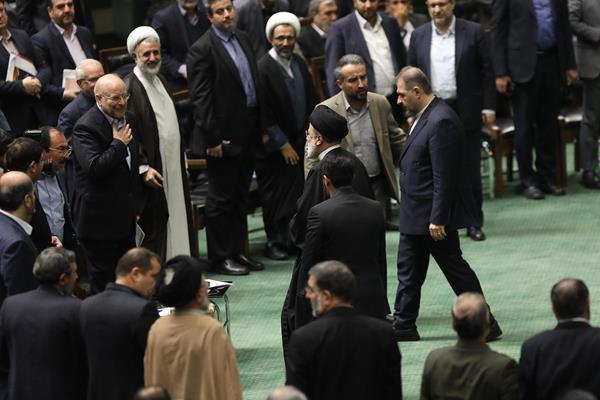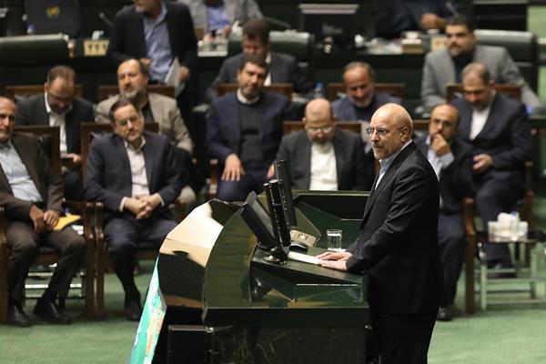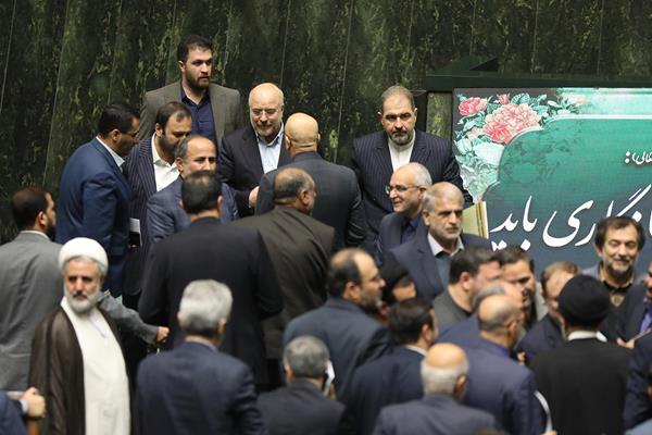 در میانه بررسی دستور کار رئیس جمهور ساعت ۹:۱۵ همراه با استقبال محمد باقر قالیباف رئیس مجلس شورای اسلامی وارد مجلس شد و مورد استقبال گرم نمایندگان قرار گرفت.