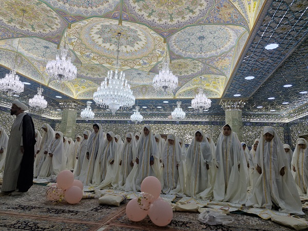 آستان بهارستان ؛ مراسم جشن تکلیف دختران شهدای مدافع حرم، جانبازان و رزمندگان جبهه مقاومت فاطمیون در سالن غدیرکتابخانه عمومی آیتالله خامنهای(مدظلهالعالی) برگزار شد.