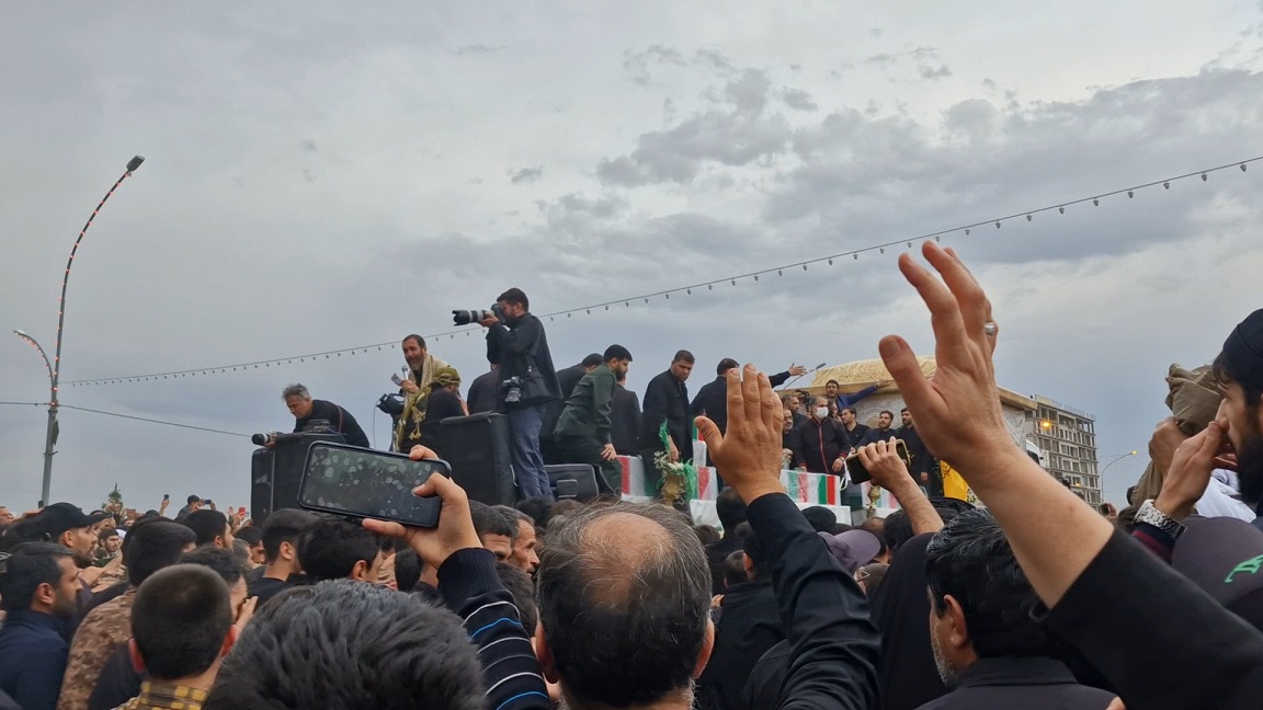 جوانان انقلابی و هیئتی درحالی که در پشت تریلی حامل پیکرهای مطهر میدویدند شعارهای «مرگ بر آمریکا» و «مرگ بر اسرائیل» سر میدادند.