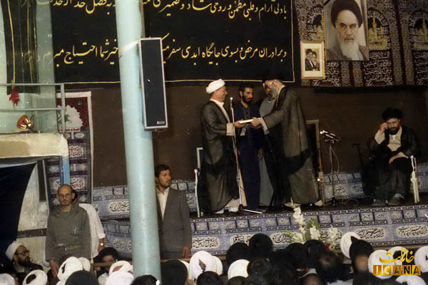 ایشان که چند ماه پیش از ورود به انتخابات از یک ترور ناکام توسط منافقان مجروح شده بودند، با حضور در جماران حکم خود را گرفت.