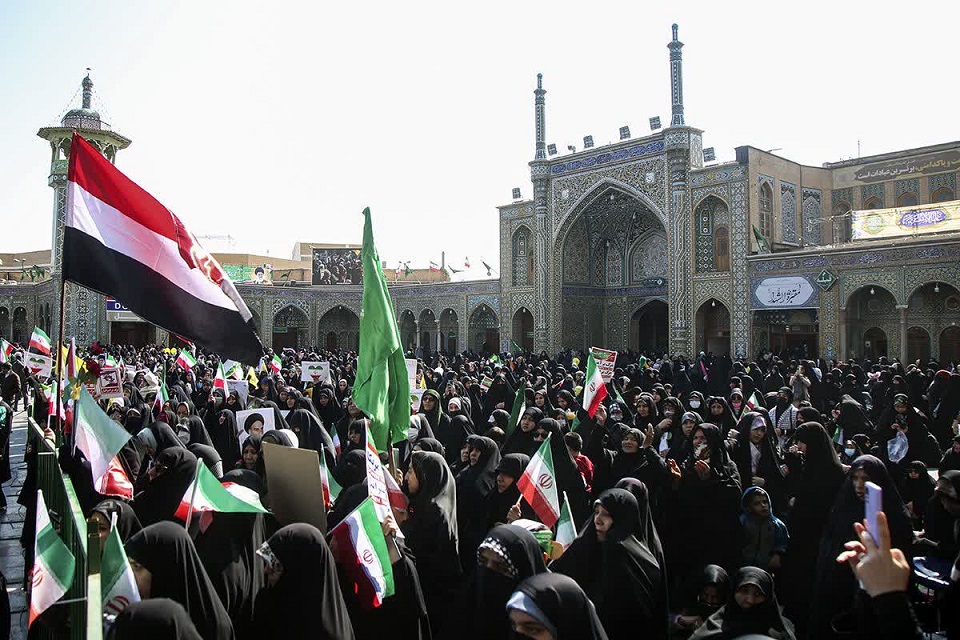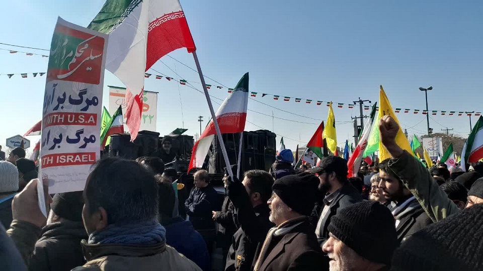 در این مراسم مردم از هر قومیت و نژاد و سلایق سیاسی، همه با پرچم جمهوری اسلامی ایران یک صدا «استقلال، آزادی و جمهوری اسلامی» را فریاد زدند.