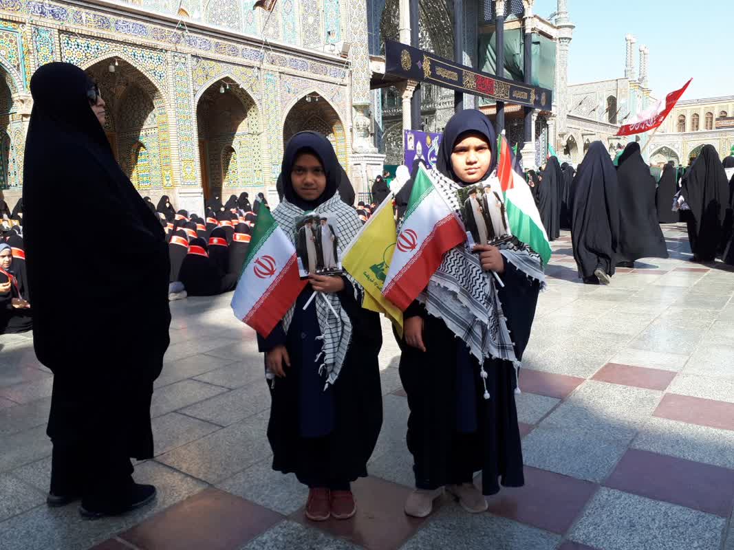 یکی از جلوههای ویژه مراسم امسال، حضور پرشور مادران در کنار فرزندان خردسالشان بود که با پرچمهای کوچک ایران، فضای عاطفی و در عین حال انقلابی مراسم را دوچندان کرده بودند.