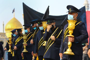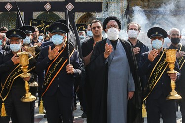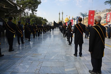 آستان بهارستان؛ به مناسبت سالروز شهادت امام رضا (ع) امروز ۱۵ مهرماه ۱۴۰۰ دسته عزاداری خادمان حرم با همراهی اقشار مختلف مردم از مسجد امام حسن عسکری (ع) به سمت حرم مطهر حضرت معصومه (س) برگزار شد.
