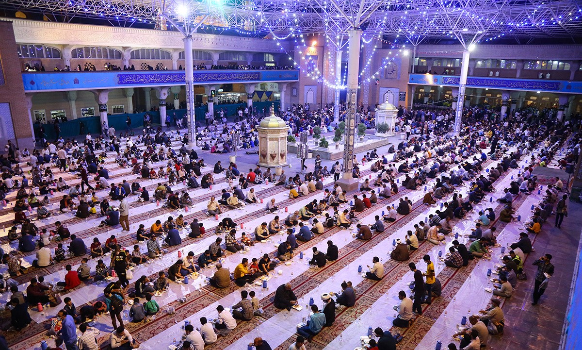 آستان بهارستان؛ در ماه رمضان امسال هم خادمان حرم مطهر حضرت فاطمه معصومه (س) با برپایی سفره افطار میزبان مردم روزه دار بودند.
