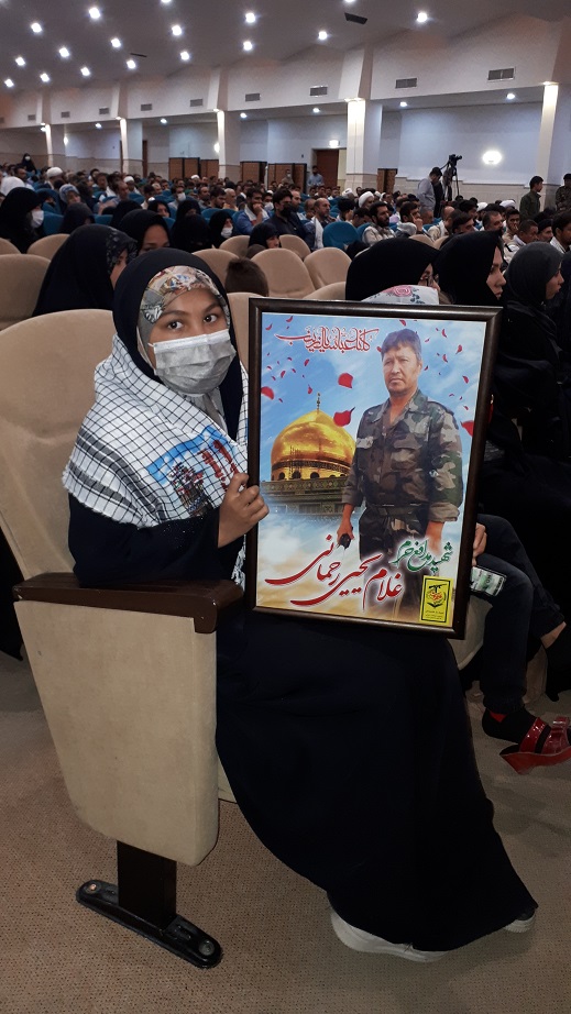 در پایان از برخی خانواده های شهدا تقدیر و مهمان ویژه این مراسم یک شهید گمنام تازه تفحص شده عملیات کربلای پنج شلمچه بود که بر روی دست مردم تشییع شد.